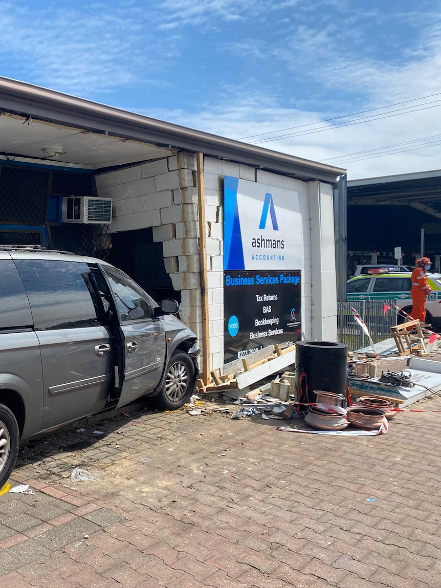 - The minivan crashed into a business in Adelaide’s south-west on Sunday morning