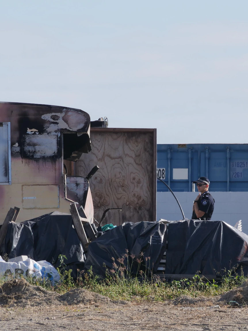 Investigators are trying to determine the cause of a fatal fire that gutted a shipping container and damaged a nearby caravan.
