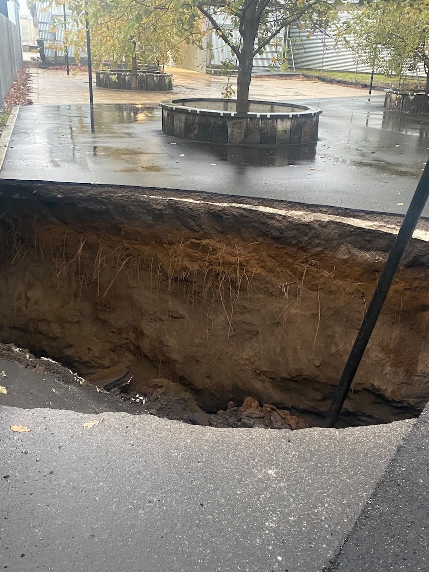 - A large sinkhole appeared in Mount Gambier’s CBD on Sunday following a weekend of heavy rain