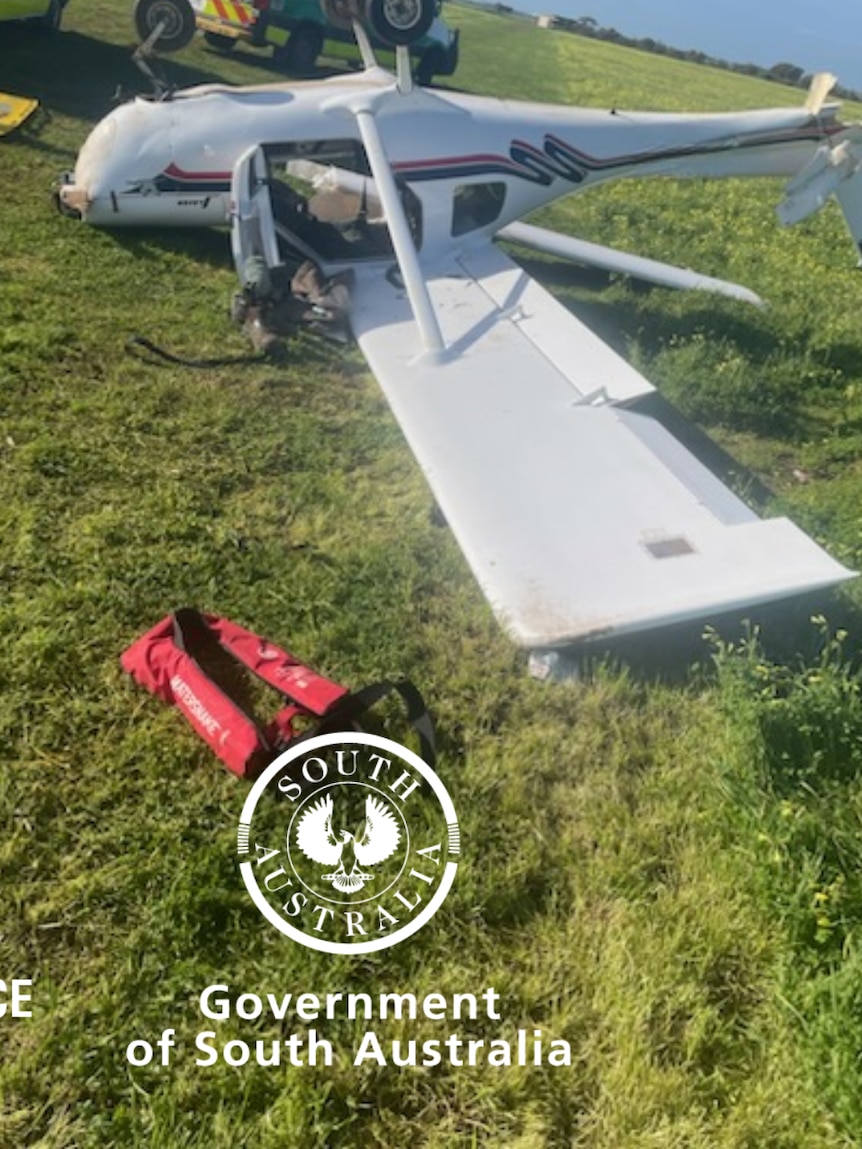 Police said the pilot, a 63-year-old Brentwood man, was flown to the Royal Adelaide Hospital with serious injuries.