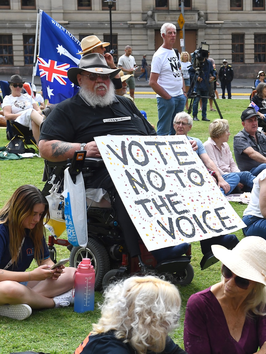 Hundreds of people have attended unofficial No vote rallies in Melbourne, Sydney, Adelaide and Brisbane ahead of the Voice referendum on October 14.