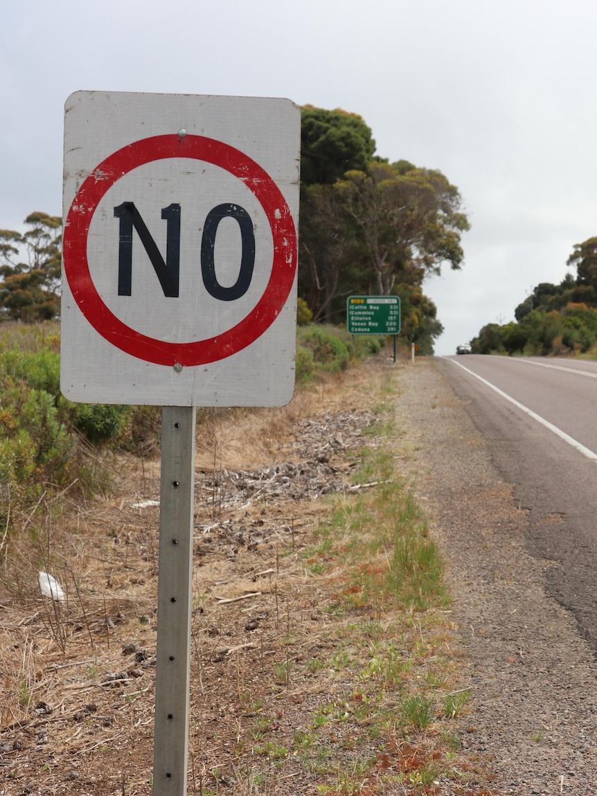A speed sign along the Flinders Highway outside of Port Lincoln was found vandalised with black tape on Tuesday.