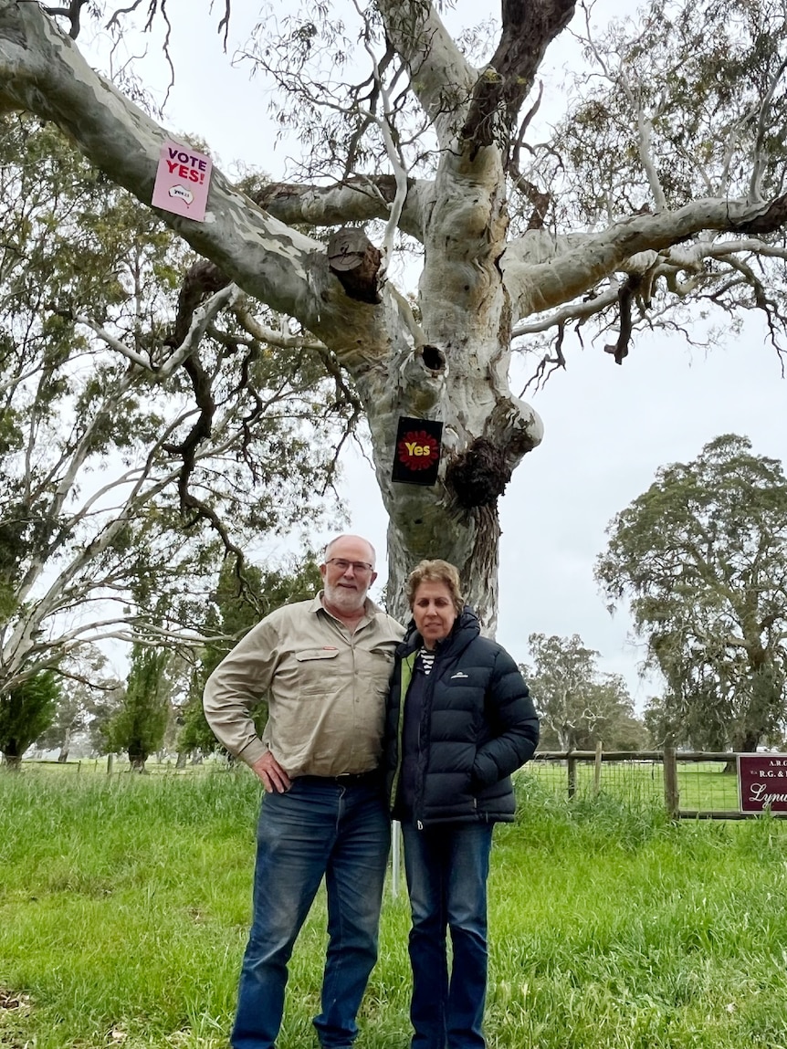 - Tony and Kathy Beck put Yes signs on a fence on their property near Mount Gambier