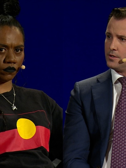 Pushed again for his view, Mr Stevens tried to deflect before he eventually gave an answer that drew boos from the audience and a heated response from Ms Wanganeen.