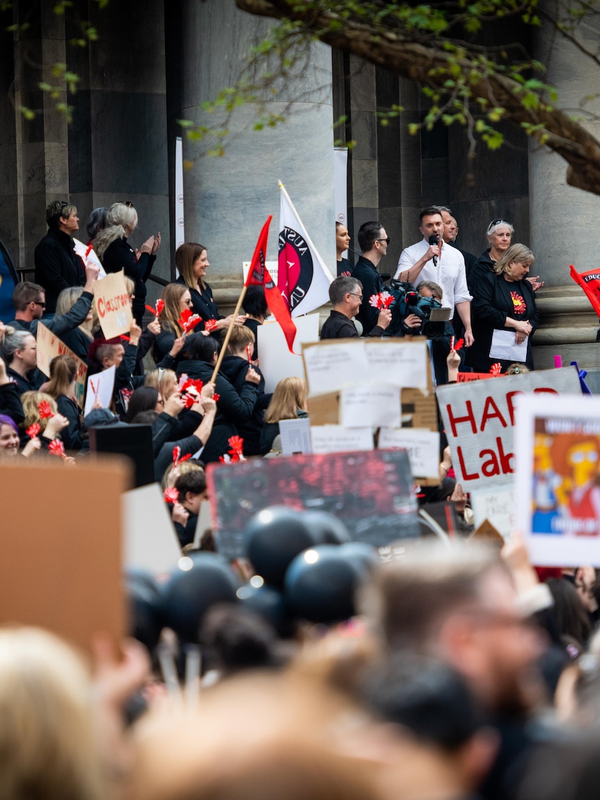 Thousands of teachers took to the steps of Parliament House after the last offer in September, forcing hundreds of schools to close.