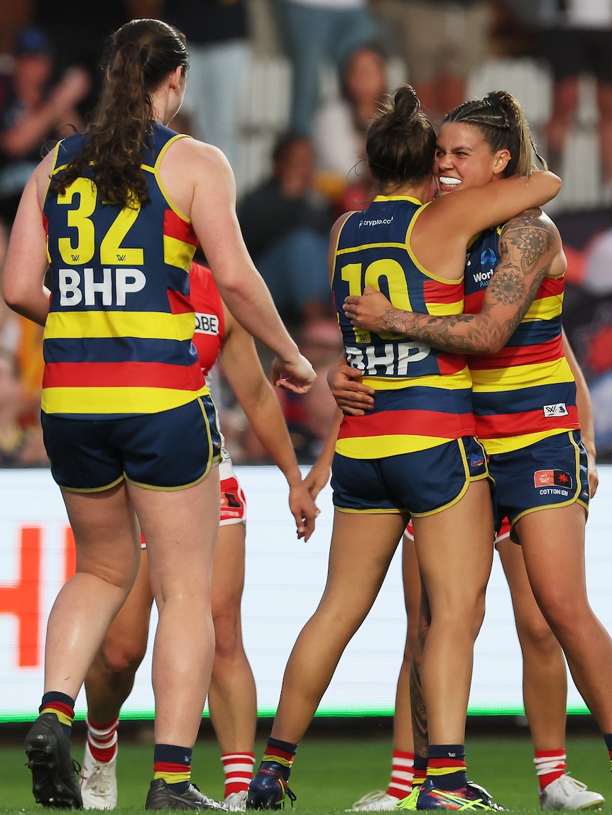 And Adelaide’s attack also fired with Yvonne Bonner, captain Chelsea Randall and Jess Waterhouse slotting two goals apiece to delight the parochial 4688-strong crowd.