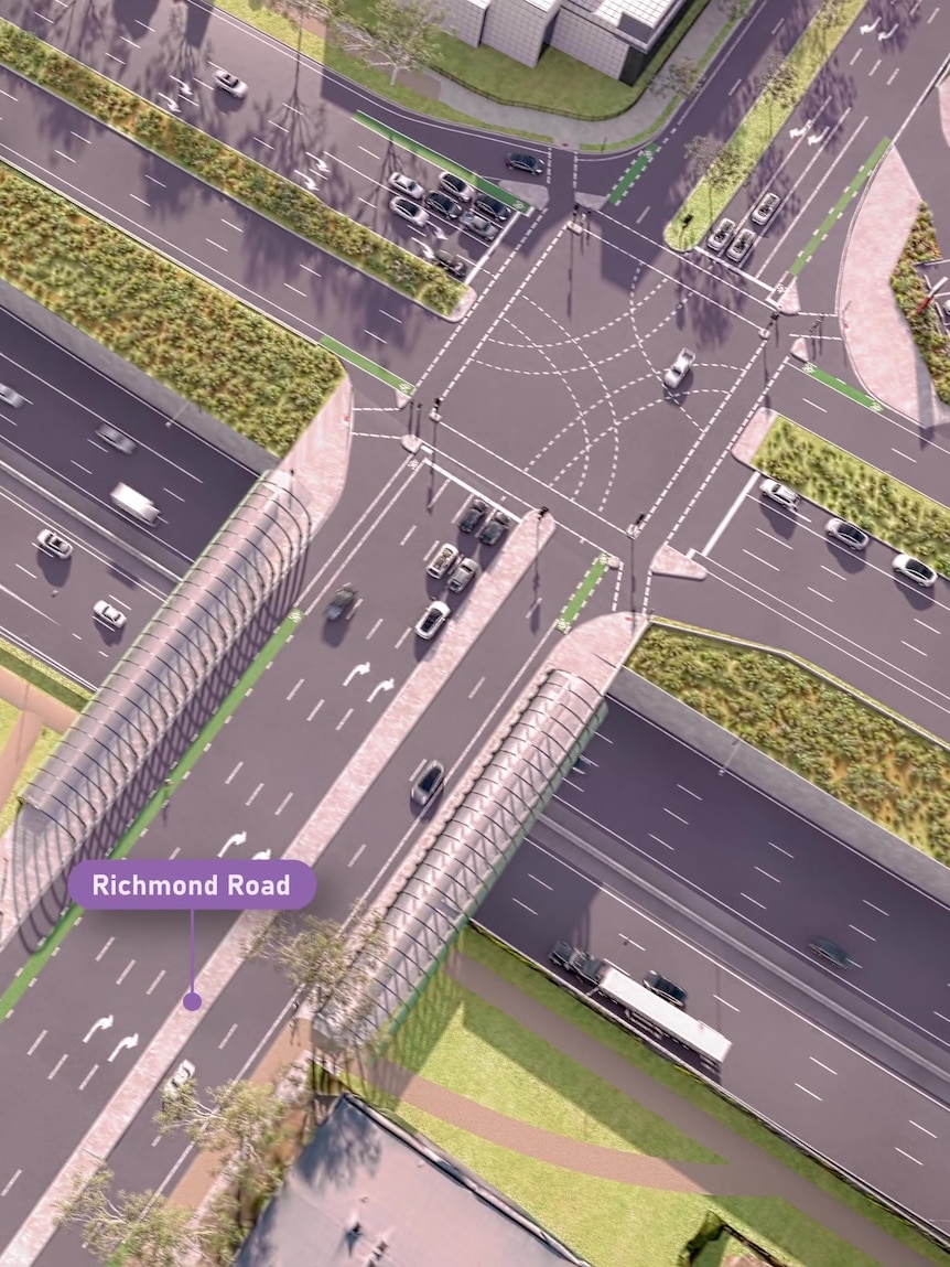 The design includes two sets of twin tunnels — in the north from Torrensville to Richmond and in the south from Glandore to Clovelly Park — with an open motorway in between.