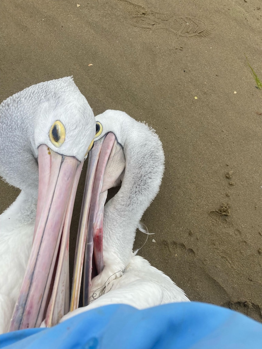 - Two pelicans were found intertwined with fishing lines and hooks near the Murray Mouth