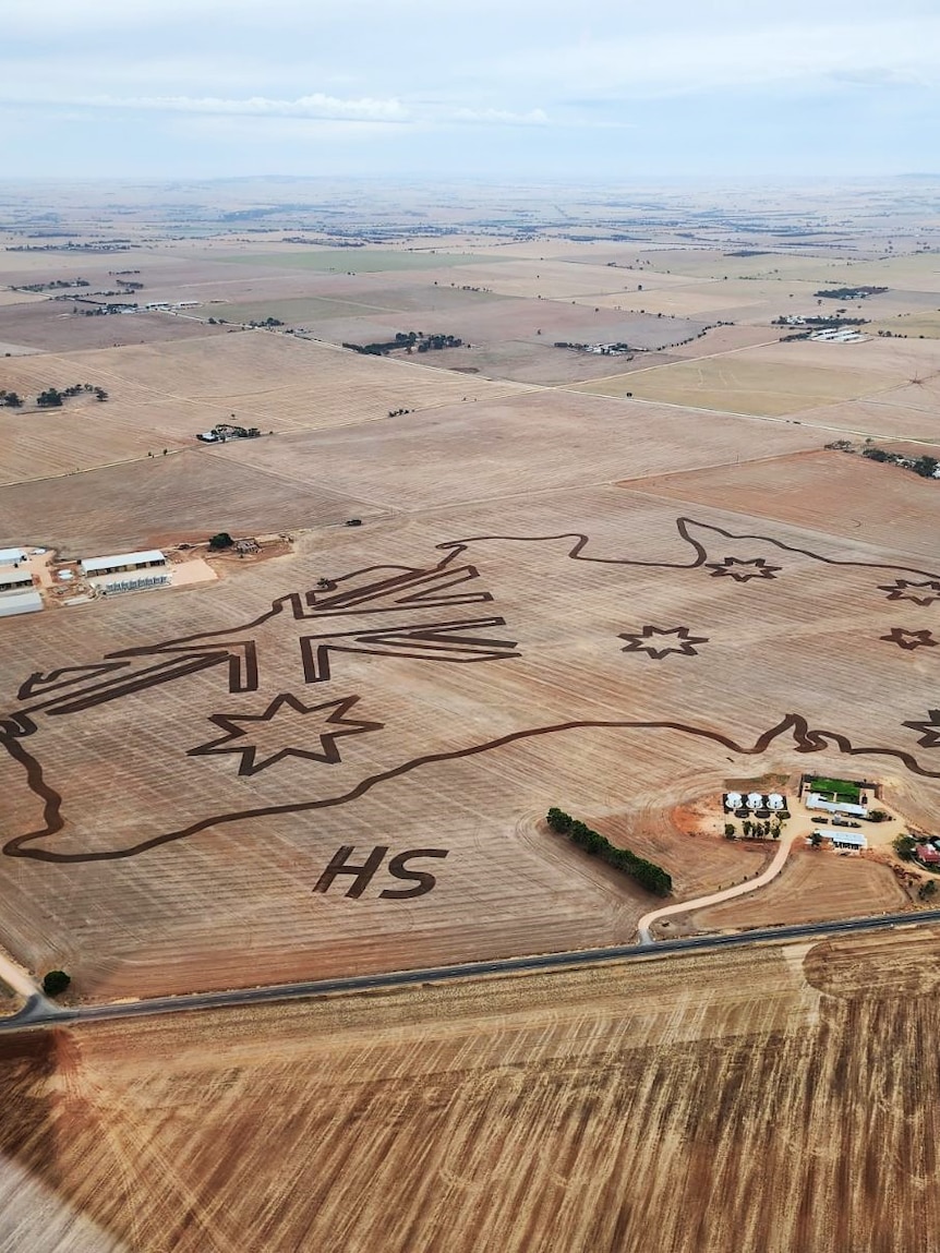 A farmer in South Australia has used his tractor to turn a paddock into a giant map of Australia.