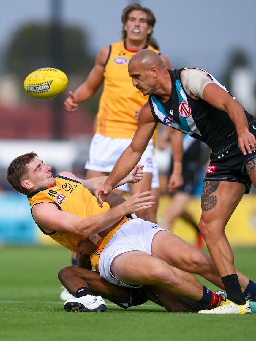 Powell-Pepper pleaded guilty to a rough conduct charge after collecting the Crows defender high during the first term of Port Adelaide’s pre-season match against the Crows last Friday.